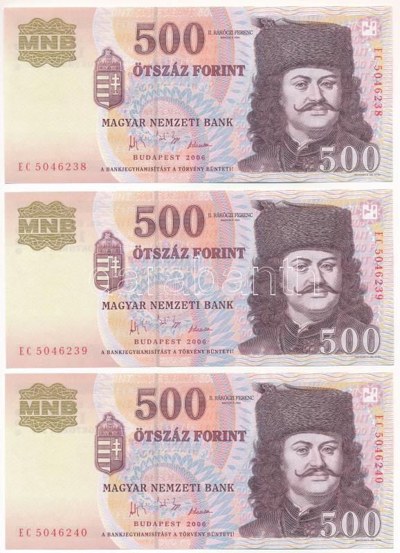 2006. 500Ft "A forradalom 50. évfordulója 1956. október 23." (3x) sorszámkövetők "EC 5046238 - EC 5046240" T:UNC