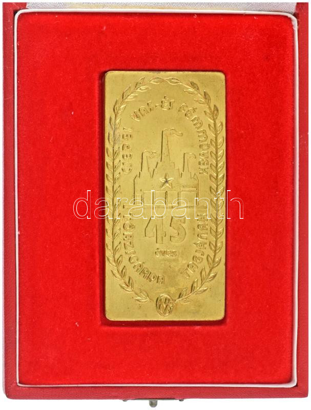 ~1985. "Csepel Vas- és Fémművek 45 éves törzsgárda tagjának" egyoldalas bronz plakett eredeti, a gyár emblémájával ellátott dobozban (85x43mm) T:AU