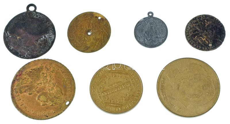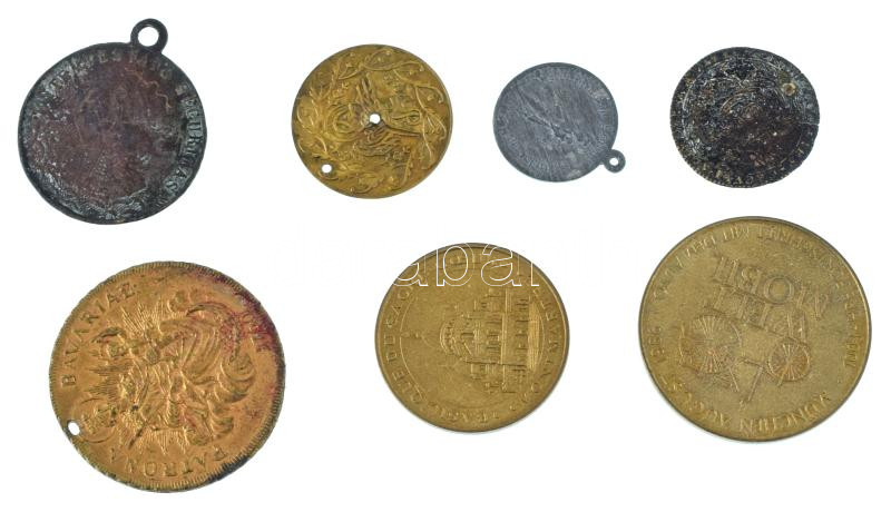 Description: 7db-os külföldi emlékérem és gyenge tartású érem tétel, közte Németország 1986. "Welt Mobil - 100 év fejlődés az autóval / Daimler Benz" fém emlékérem (40mm) T:AU-F közte lyukasztott