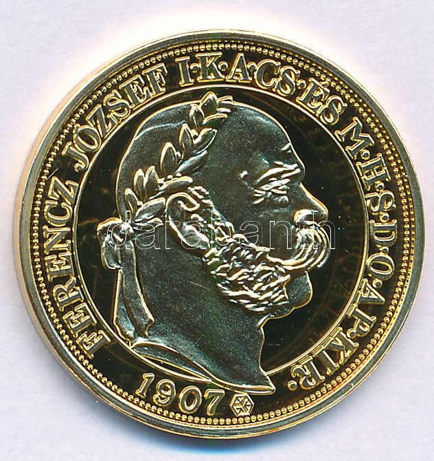 https://www.darabanth.com/en/466-Online-auction/466.0/Numismatics/Modern-restrikes-fantasy-coins~1500013/1907-100K-Ferenc-Jozsef-Megkoronazasanak-Negyvenedik-Evfordulojara-aranyozott-Ag-utanvere~II3149322