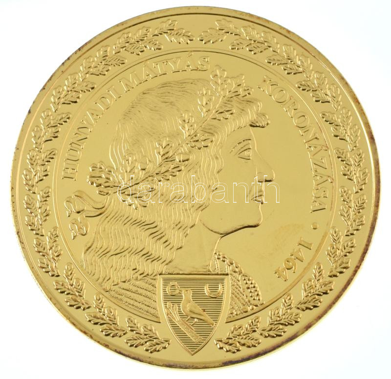 DN "Magyar Aranyóriások - Hunyadi Mátyás koronázása 1464" aranyozott Cu emlékérem kapszulában (46mm) T:PP