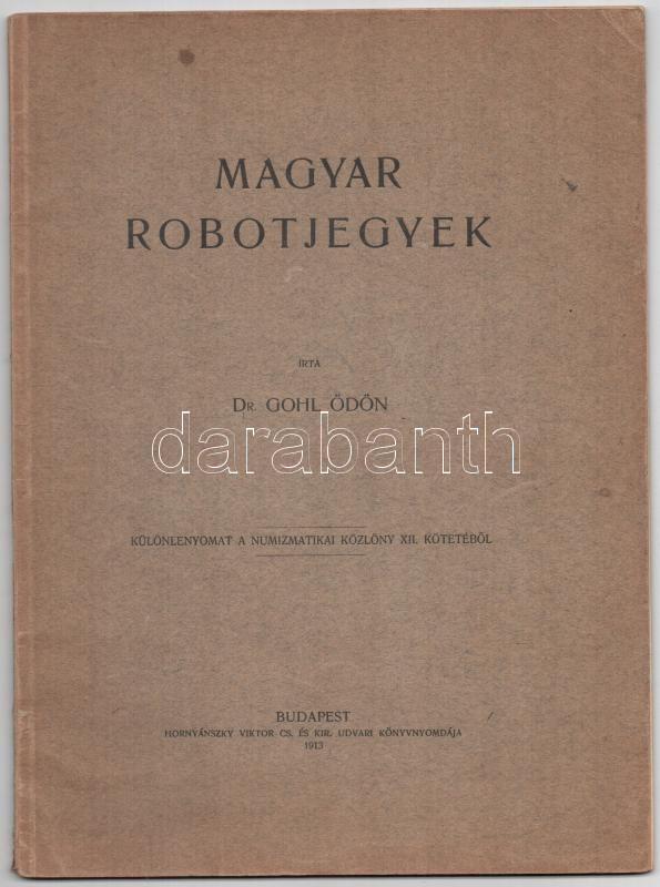 https://www.darabanth.com/en/466-Online-auction/466.0/Numismatics/Numismatics-Literature~1500003/Gohl-Odon-Magyar-robotjegyek-Bp1913Hornyanszky-26p-p-szovegkozti-kepekkel-Kiadoi-karton~II3108629