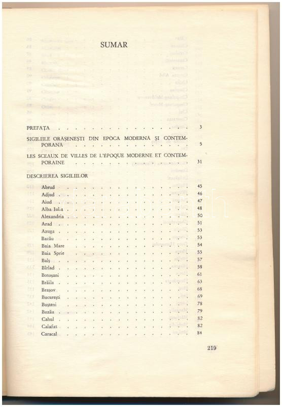 Description: Sigilii Orasenesti din epoca moderna si contemporana (Modernkori és Kortárs Városi Pecsétek). Román Szocialista Köztársaság Levéltára, Bukarest, 1978.