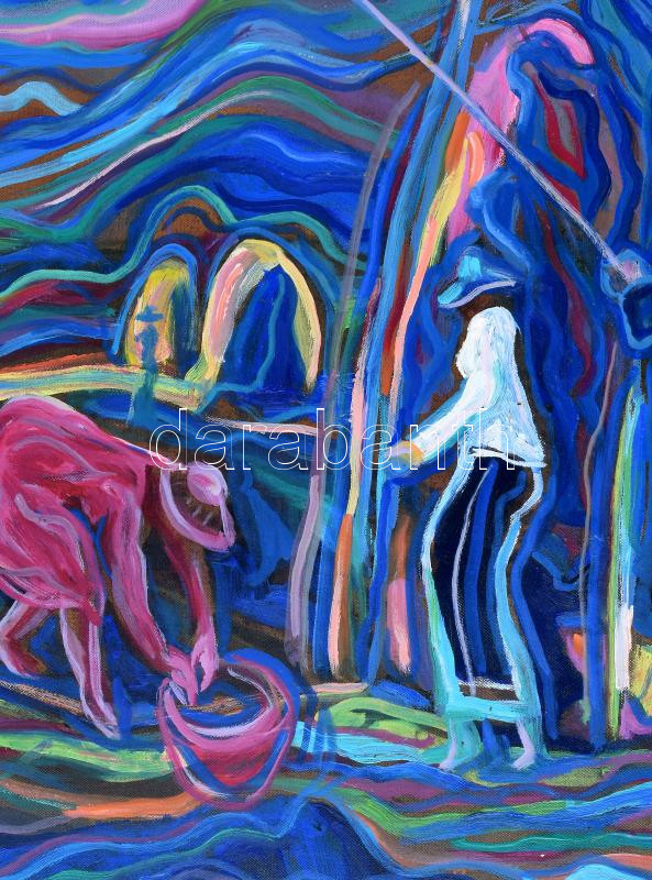 Kozma István (1937-2020): Társaság (cím nélkül). Olaj, vászon, jelezve... https://www.darabanth.com/en/466-Online-auction/466.0/Paintings-and-graphics/Paintings-and-graphics~1/Kozma-Istvan-1937-2020-Tarsasag-cim-nelkul-Olaj-vaszon-jelezve-jobbra-lent-60C39780-cm~II3142431