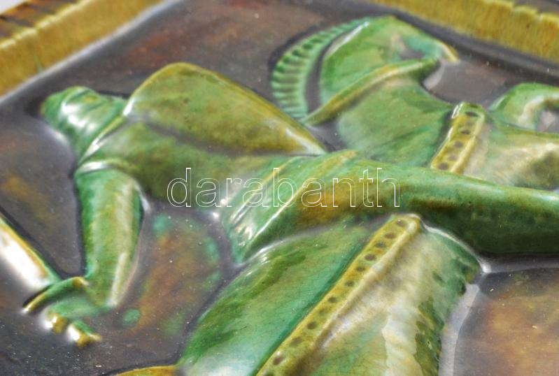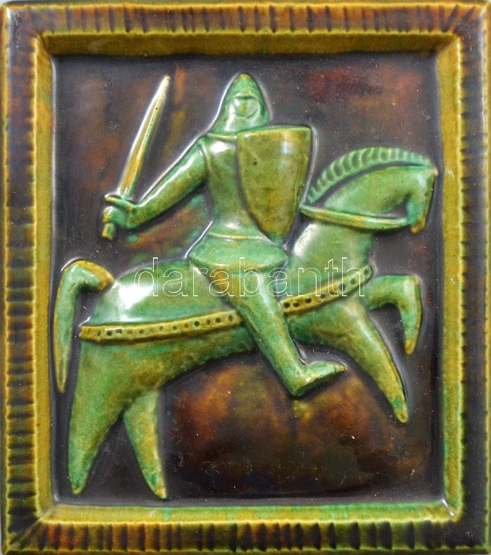 Kályhacsempe. Keresztes vitéz. Mázas, samottos kerámia, falra is akasztható 22x23 cm