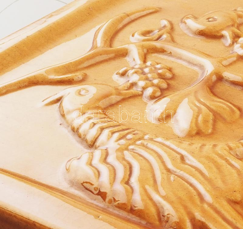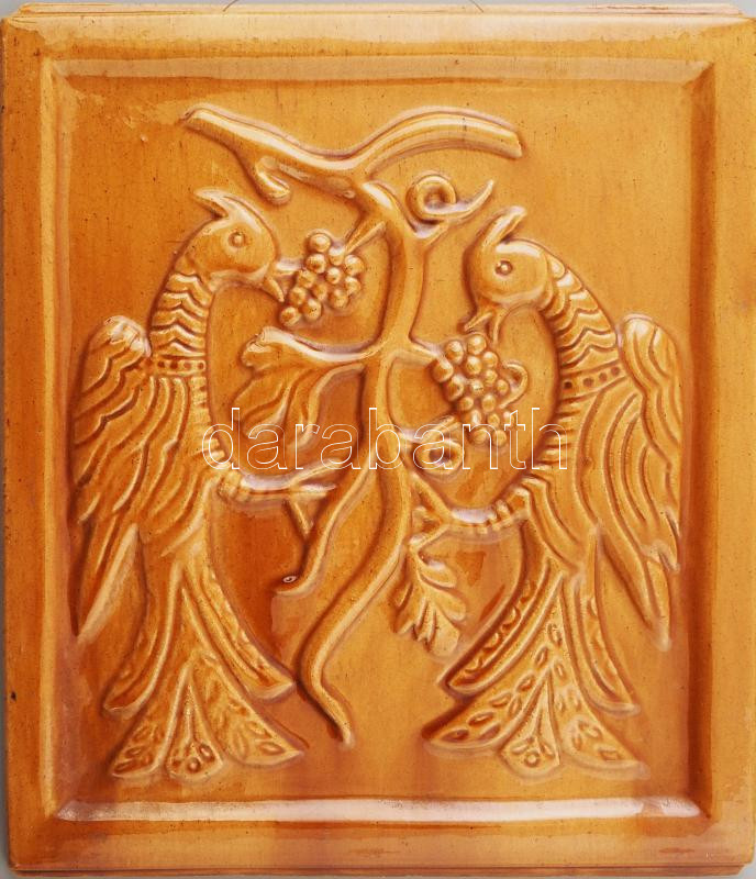Rusói István Karcag: Figurális kályhacsempe. Falra akasztható. Jelzett, hibátlan 23x25 cm