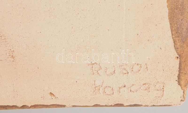 Rusói István Karcag: Figurális kályhacsempe. Falra akasztható. Jelzett...