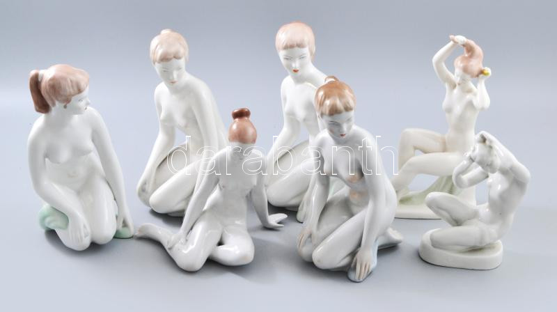 7 darab Aquincum akt figura, különböző modellek, egyik jelzés nélkül, m: 22 cm alatt, kis kopással.