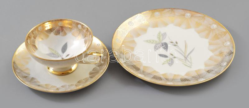 Bavaria dúsan aranyozott reggeliző szett, jelzett, minimális kopással, d: 19,5 cm