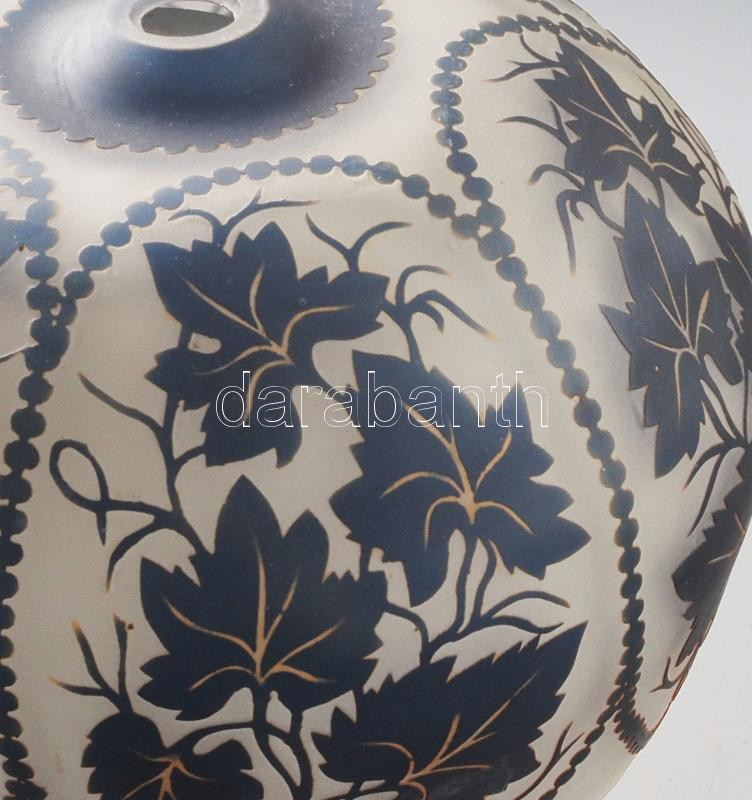 Asztali lámpa üveg test, üveg búra, levél mintás, többrétegű, homokfúv...