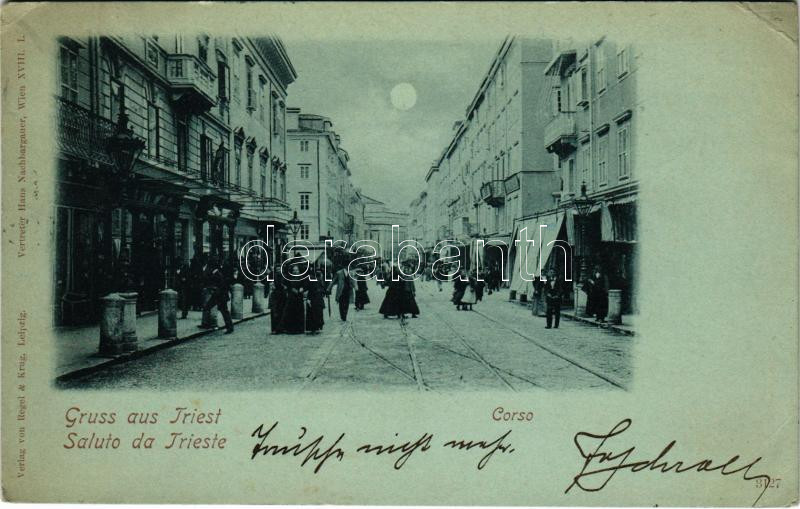 1898 (Vorläufer) Trieste, Trieszt; Corso / street at night (EK)