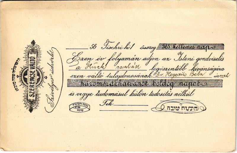 1935 Boldog Újévet! Zsidó "Szerencse Váltó" héber feliratokkal. Judaika / Jewish New Year greeting, Hebrew text. Judaica (EK)
