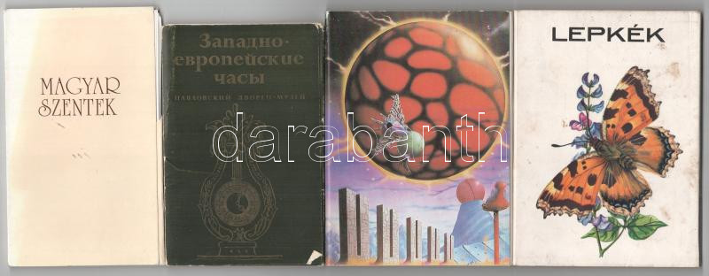4 db MODERN érdekes képeslap sorozat: Magyar Szentek, Lepkék, Galaktika Kisképtár, Western European Clocks Pavlovsk Palace