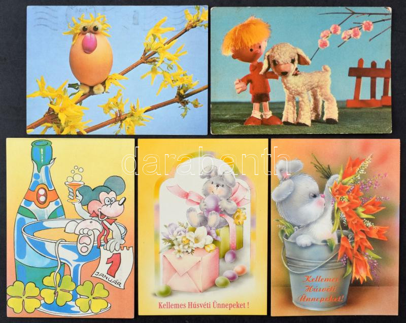 Kb. 87 db MODERN motívum képeslap: mese, rajzfigura, báb, üdvözlő, húsvét