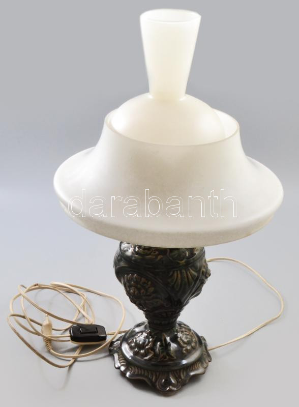 Asztali lámpa. Savmaratott búrákkal, jelzett, jó állapotban, m: 48 cm