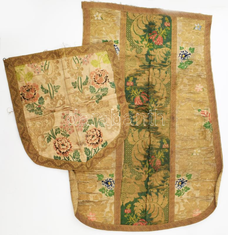 Casula. cca 18. sz. - 19. sz. eleje, két részben, korának megfelelő állapotban, 50x44 cm, 90x70 cm. Ebből a korból ritkán kerül elő, gyűjtői darab!