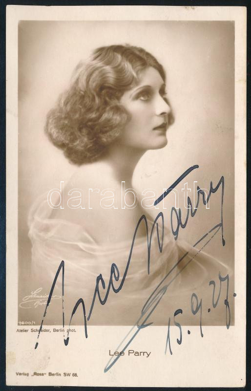 Lee Parry (1901-1977) német színésznő aláírt fotólapja