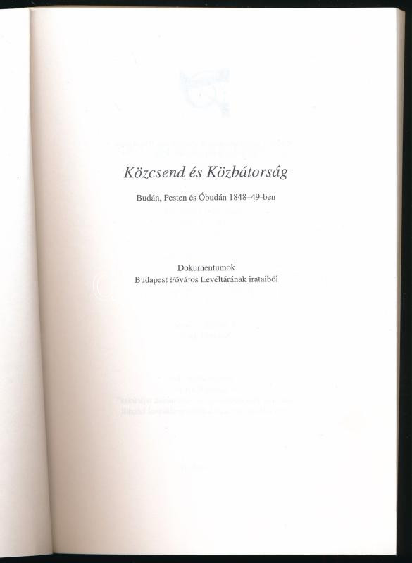 Czaga Viktória - Jancsó Éva: Közcsend és közbátorság Budán, Pesten és Óbudán 1848-49-ben. Budapest Történetének Forrásai. Bp., 1998, Budapest FÅ‘város Levéltára. Kiadói papÃrkötés, kissé koszos borÃtóval.