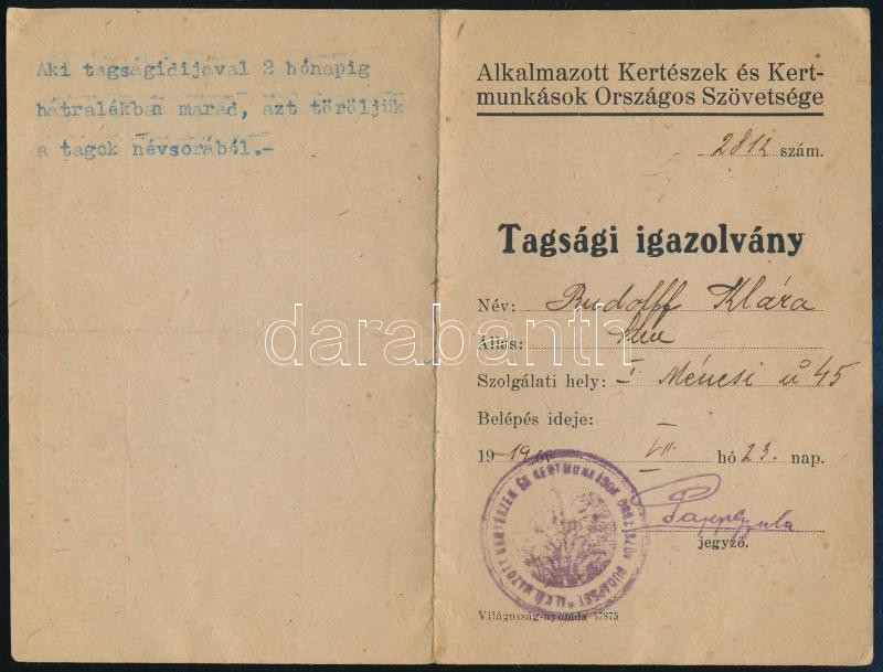 https://www.darabanth.com/en/467-Online-auction/467.0/Art-and-other-collectibles/Documents~2000098/1919-Alkalmazott-Kerteszek-es-Kertmunkasok-Orszagos-Szovetsege-tagsagi-igazolvany~II3152255