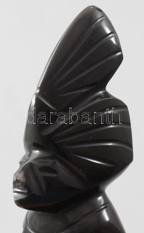 Mexikói obszidián törzsi totem. Jelzés nélkül, kis kopással, m: 12 c