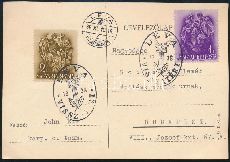 cca 1938 Üdvözlő levelezőlap, "Léva visszatért" bélyegzéssel.