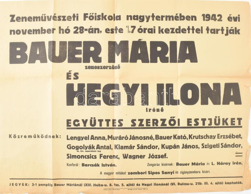 https://www.darabanth.com/en/467-Online-auction/467.0/Art-and-other-collectibles/Posters~2000100/1942-Zeneakademiai-plakat-Burger-Maria-Hegyi-Ilona-62x50-cm-Szelen-szakadasokkal~II3115700