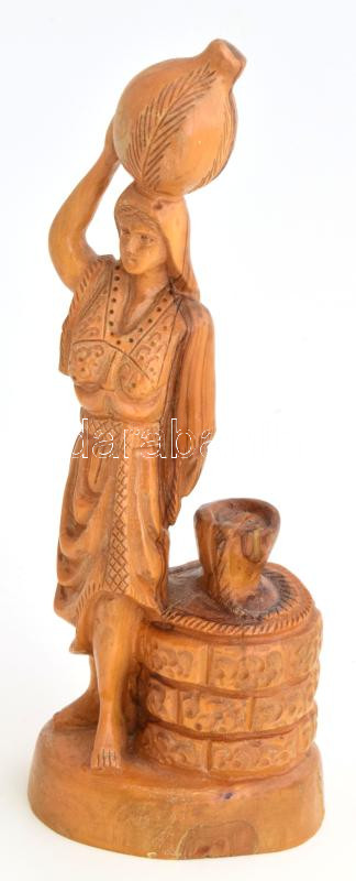 Nő korsóval. Faragott keményfa szobor, jelzés nélkül, m: 27 cm