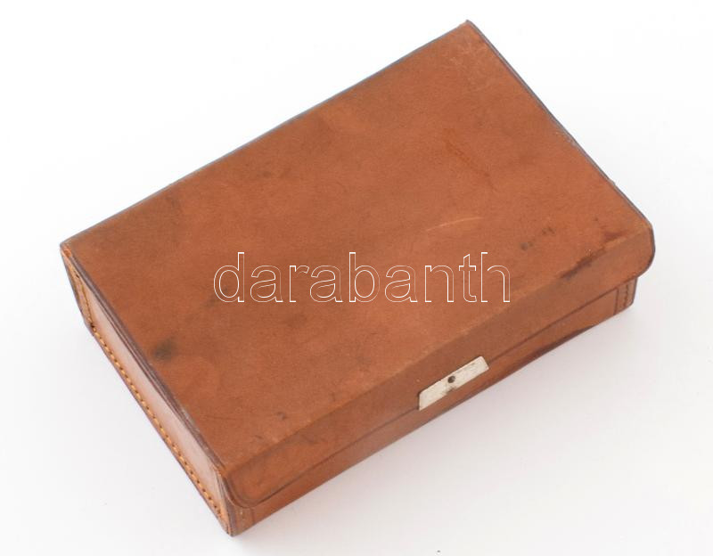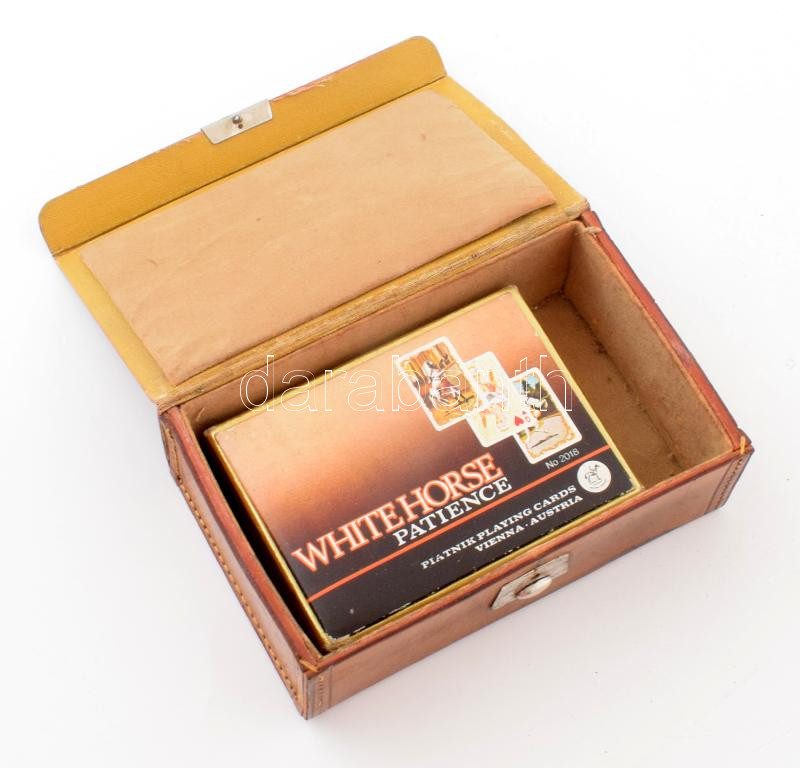 Antik bőr kártyadoboz, benne Piatnik kártyapakli