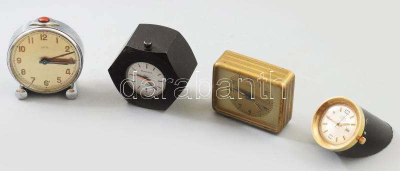 4 darab régi utazóóra, Albion 17 köves, Oris, Fontana, art deco Junghans, vegyes állapotban.