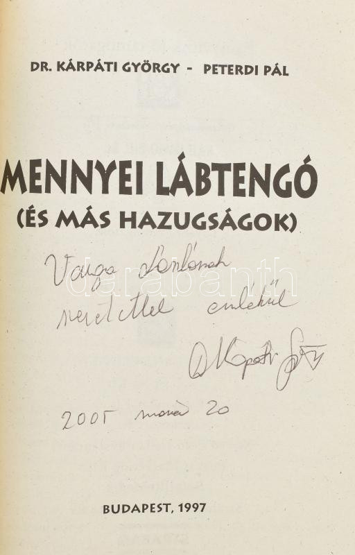 https://www.darabanth.com/en/467-Online-auction/467.0/Books/Books-Other-rarities~1000034/Dr-Karpati-Gyorgy-Peterdi-Pal-Mennyei-labtengo-es-mas-hazugsagok-DEDIKALT-Bp-1997-Kn~II3119322