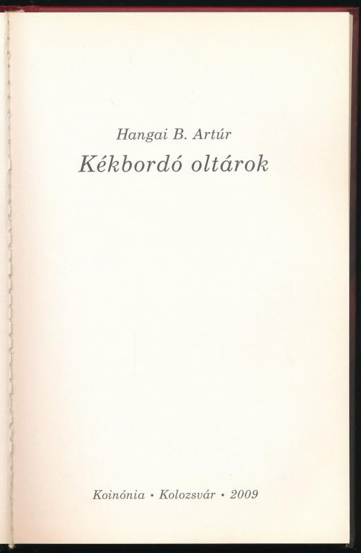 https://www.darabanth.com/en/467-Online-auction/467.0/Books/Books-Other-rarities~1000034/Hangai-B-Artur-Kekbordo-oltarok-DEDIKALT-Kolozsvar-2009-Koinonia-Kiadoi-kartonalt~II3152294