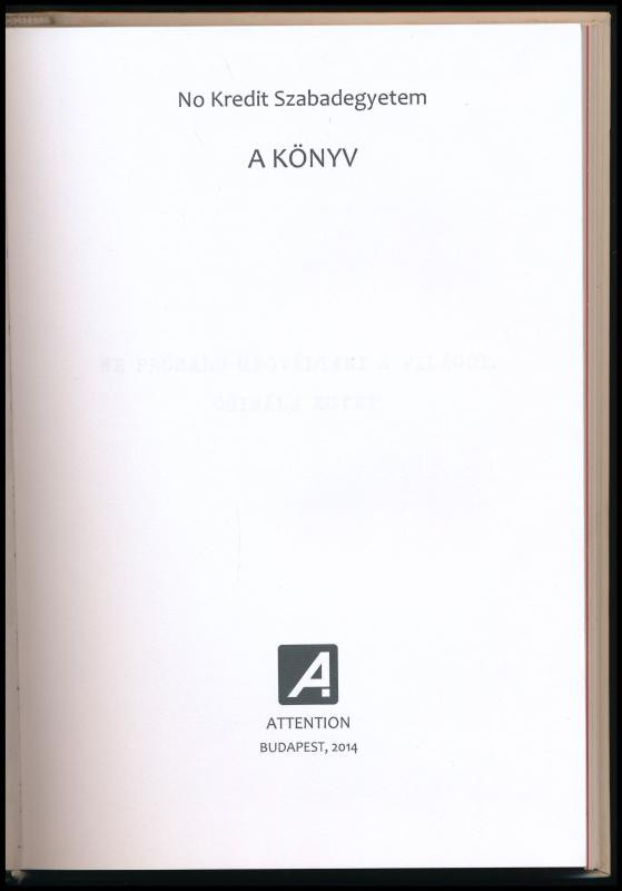 No Kredit Szabadegyetem - A Könyv. Bp., 2014, Attention. Kiadói papírk...