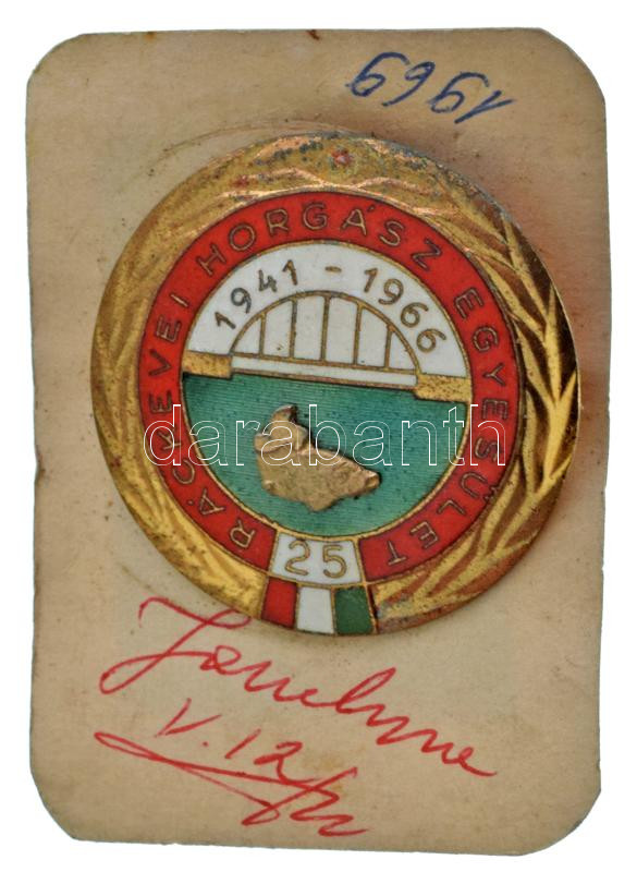 https://www.darabanth.com/en/467-Online-auction/467.0/Numismatics/Faleristics-medals-orders-badges~1500021/1966-Rackevei-Horgasz-Egyesulet-25-evforduloja-1941-1966-aranyozott-zomancozott-fem-jelveny~II3153999