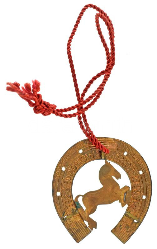 Ausztria DN "Weisses Rössl St. Wolfgang am See" zománcozott, patkó alakú bronz jelvény (65x70mm) T:VF nagyobb zománchiba Austria ND "Weisses Rössl St. Wolfgang am See" enamelled, horseshoe-shaped bronze badge (65x70mm) C:VF bigger enamel error