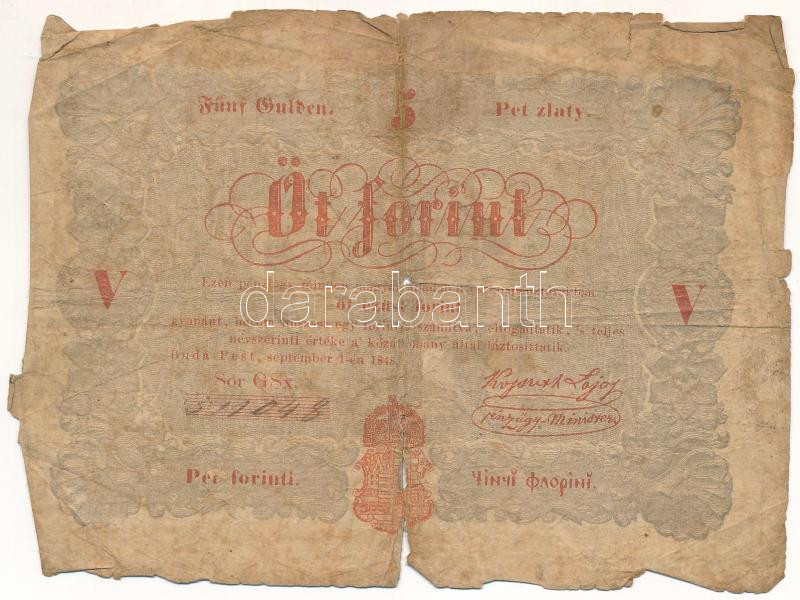 https://www.darabanth.com/en/467-Online-auction/467.0/Numismatics/Hungarian-Banknotes~1500008/1848-5Ft-Kossuth-banko-vorosesbarna-nyomat-T-G-Adamo-G109A~II3155026
