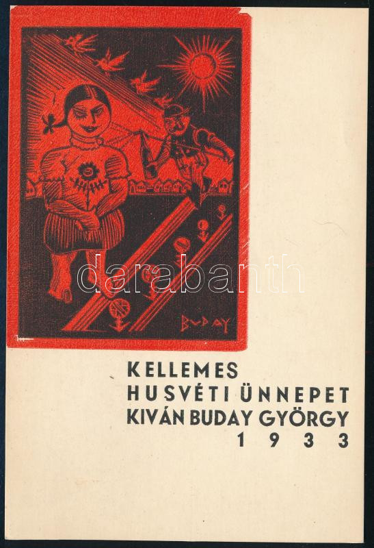 1933 Buday György (1907-1990): Kellemes húsvéti ünnepeket kíván Buday ...