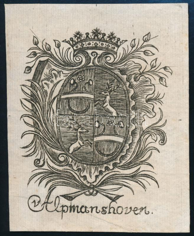 https://www.darabanth.com/en/467-Online-auction/467.0/Paintings-and-graphics/Ex-libris-small-graphics~500003/v-Alpmanshoven-XVIII-sz-Rezmetszet-papir-jelzes-nelkul-10x8-cm~II3118536