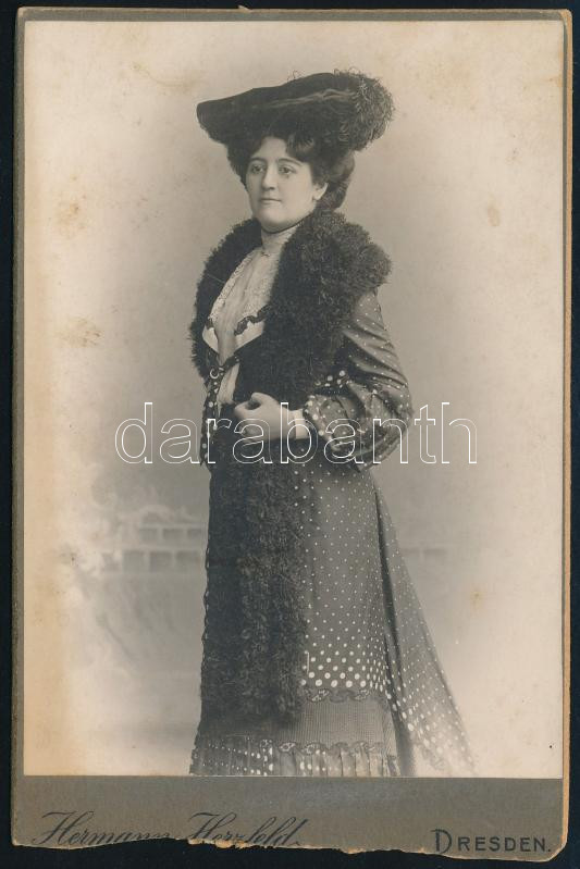 Description: cca 1900 Czullik Inez, Czullik Ágost, a Liechtenstein hercegi kertek igazgatója lányának fotója, keményhátú fotó egy drezdai műteremből, sérült karton, 16,5×10,5 cm