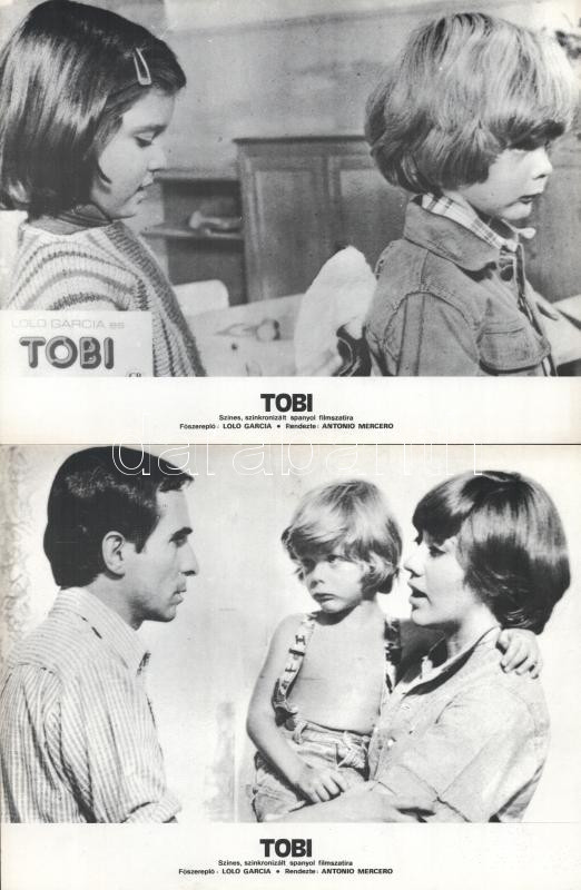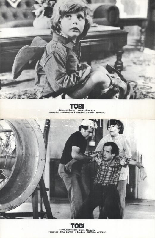 Description: cca 1989 előtt készült ,,Tobi" című spanyol film jelenetei és szereplői, 8 db produkciós filmfotó (vitrinfotó, lobbyfotó) nyomdatechnikával sokszorosítva kartonpapírra, egyoldalas nyomással, a használatból eredő (esetleges) kisebb hibákkal, 18x24 cm