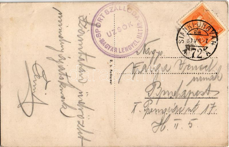 1939 Uzsok, Uzok, Uzhok; Magyar-lengyel határ, Hősök emlékműve / military heroes monument, Hungarian-Polish border + "SIANKI - UNGVÁR 72 A" vasúti mozgóposta bélyegző (EB)