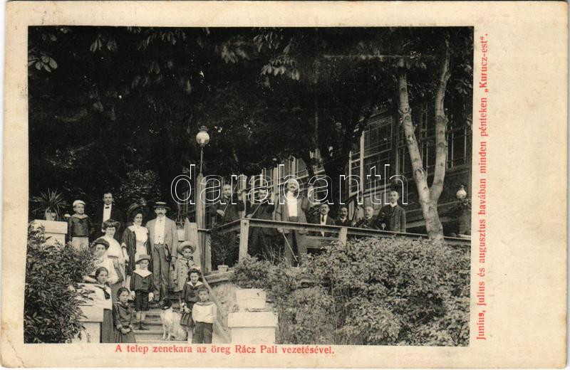 Description: 1912 Budapest II. Hűvösvölgy, Holtzspach-féle Vigadó az Orvvadászhoz, téli és nyári klimatikus üdülőhely: Június, július és augusztus havában minden pénteken "Kurucz-est", a telep zenekara az öreg Rácz Pali cigányprímás vezetésével (fl)