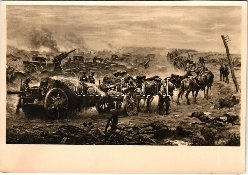 Description: Aus der Kesselschlacht von Kiew. München, Haus der Deutschen Kunst / WWII German military art postcard, Battle of Kiev (Kyiv) s: Hans Böhme (kis szakadás / small tear)