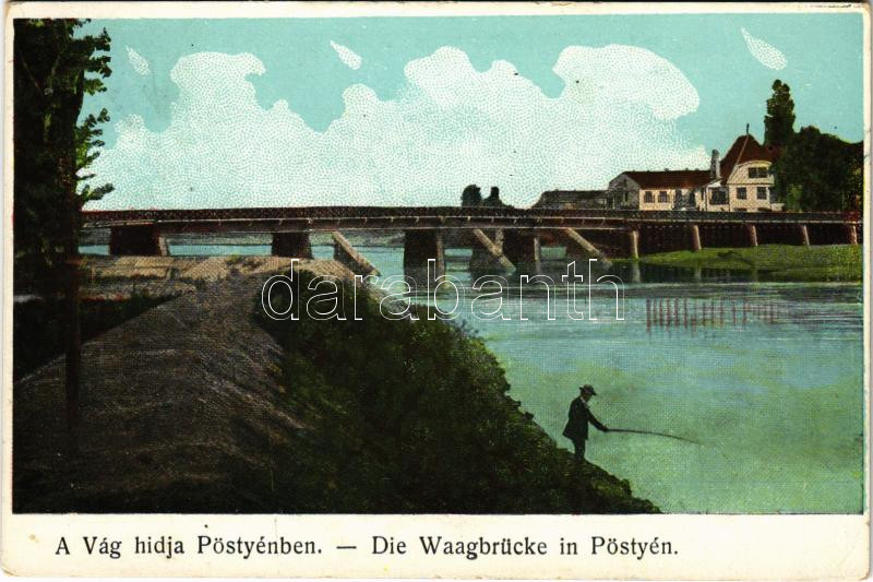 1915 Pöstyén, Piestany; Vág hídja. Gipsz H. kiadása / Die Waagbrücke /...