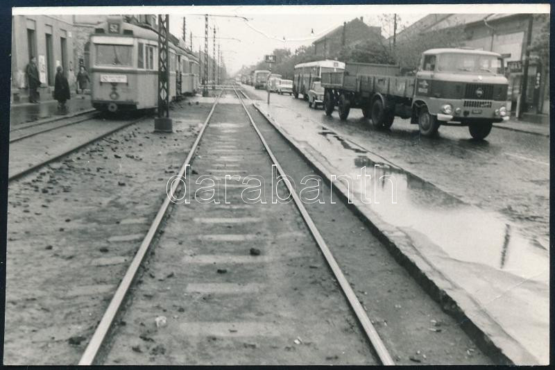cca 1960 Budapest, az 52-es villamos vonala, fotó, 8×12 cm