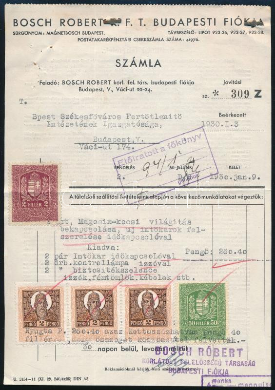 1930 Bp., "Bosch Robert Kft." kétoldalas számla