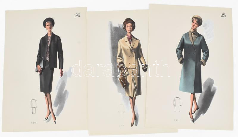 1965 3 db vintage női divatkép, ofszet nyomat, papír, 34x23,5 cm