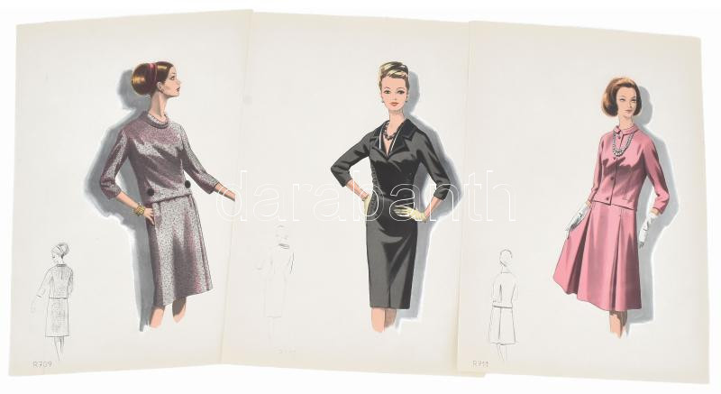 cca 1960 3 db vintage női divatkép, ofszet nyomat, papír, 34x24 cm