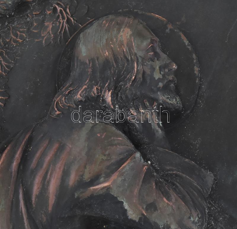 Réz fali kegykép. cca 19. sz. vége, patinás, egyik rögzítőrész sérült, 35x23,5 cm