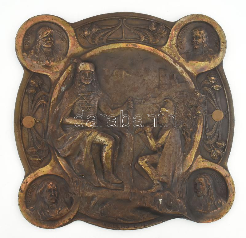 cca 1900-as évek eleje Kallós Ede (1866-1950): II. Rákóczi Ferencet ábrázoló szecessziós dombormű/ relief, hátoldalán a Tolnai Világlap ajándéka felirattal, öntöttvas, falra akasztható, 34x34 cm