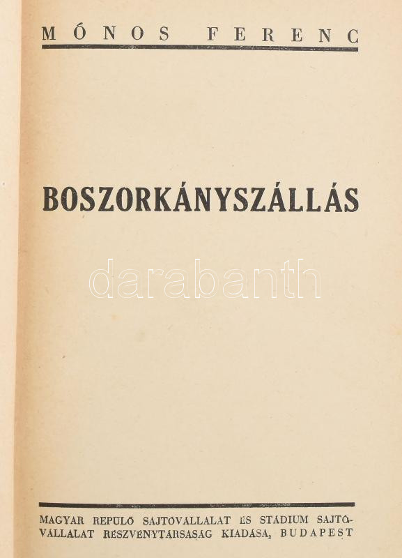 Mónos Ferenc: Boszorkányszállás. A repülő ember 9. kötet. Bp.,[ 1943.]... https://www.darabanth.com/en/468-Online-auction/468.0/Books/Books-Military~1500027/Monos-Ferenc-Boszorkanyszallas-A-repulo-ember-9-kotet-Bp-1943-Magyar-Repulo-176-p~II3168549